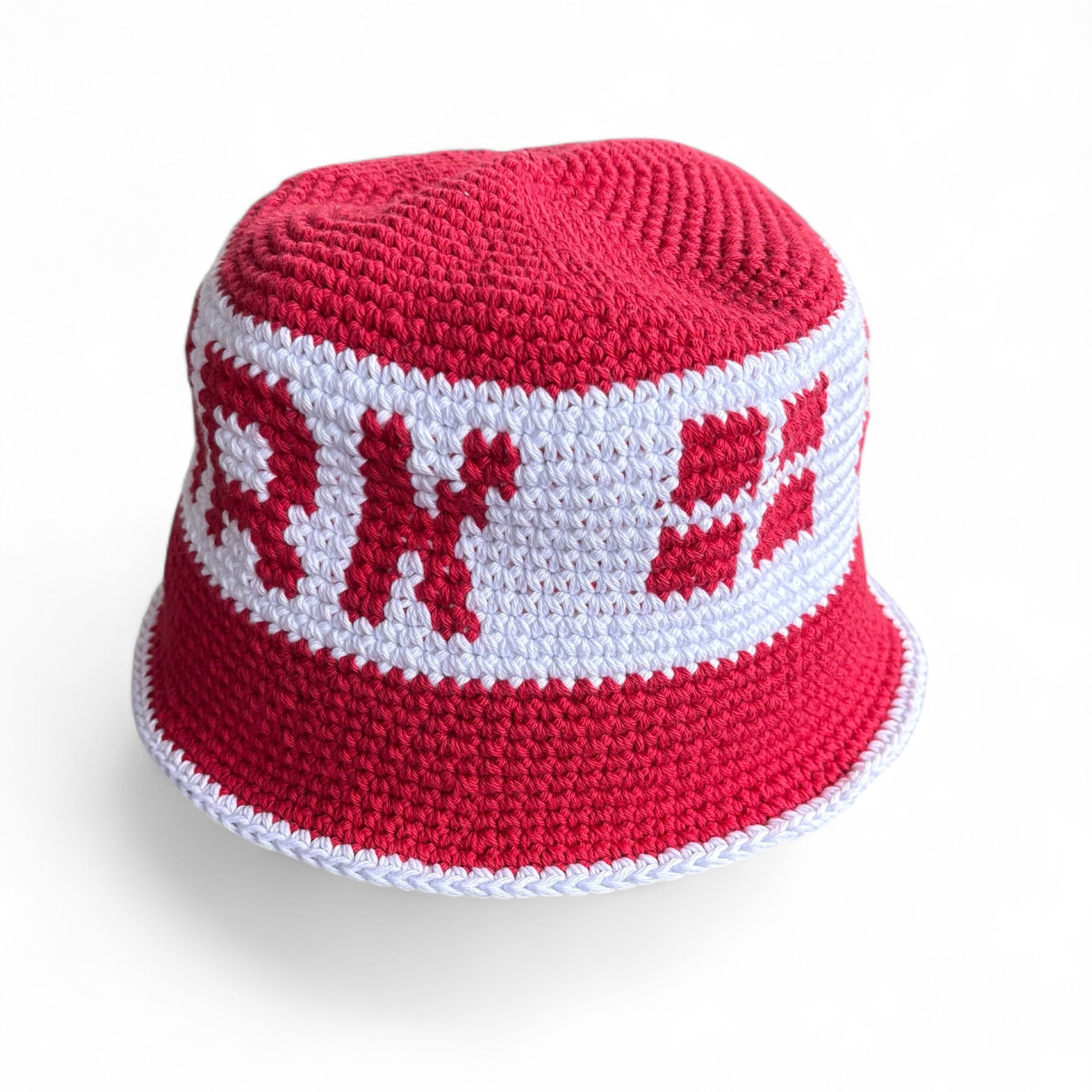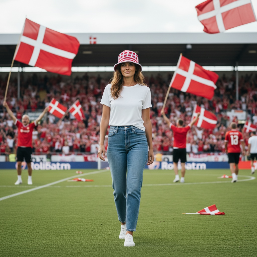 Denne hæklede bøllehat i rød og hvid er perfekt til dig, der vil vise støtte til Danmark med stil. Bøllehatten er håndhæklet og inspireret af de klassiske Dannebrog-farver, hvilket gør den ideel til fodboldkampe, festivaler, sommerfester og nationale begivenheder.
